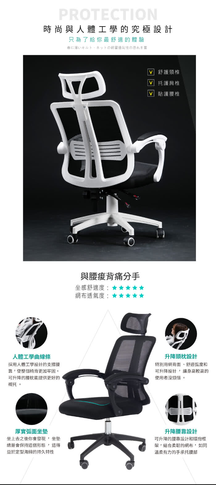 【Ashley House】升降式頭枕機能型寬背護脊工學電腦椅/辦公椅坐起來會悶熱嗎透氣效果好嗎符合人體功學嗎