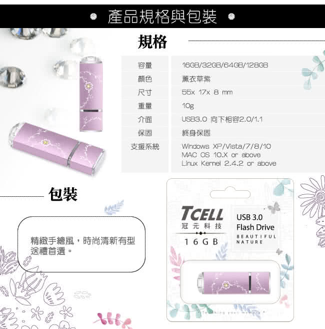 【TCELL 冠元】USB3.0 128GB 絢麗粉彩隨身碟(薰衣草紫)耐用嗎不同作業系統都可以讀取嗎存檔容易失敗嗎